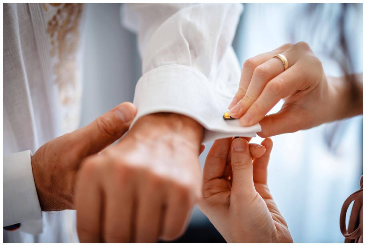 Schon am Tag vor der Hochzeit reiste das Brautpaar auf der kleinen Insel direkt vor Rovinj an und verbrachte dann den Hochzeitsmorgen in zwei getrennten Hotelzimmern.