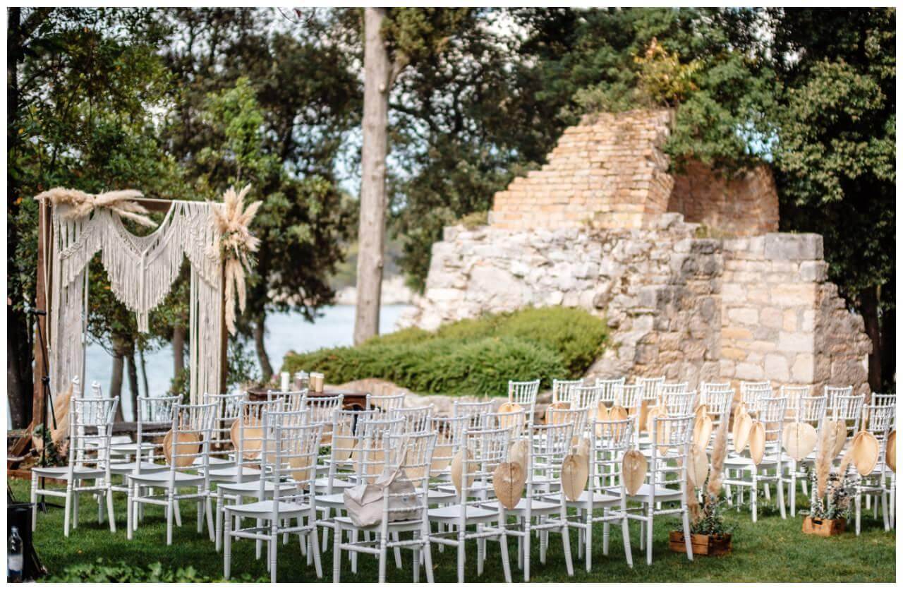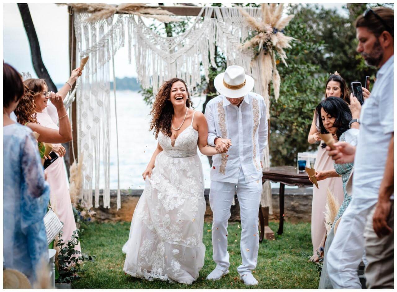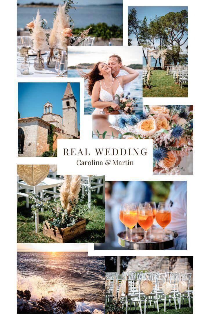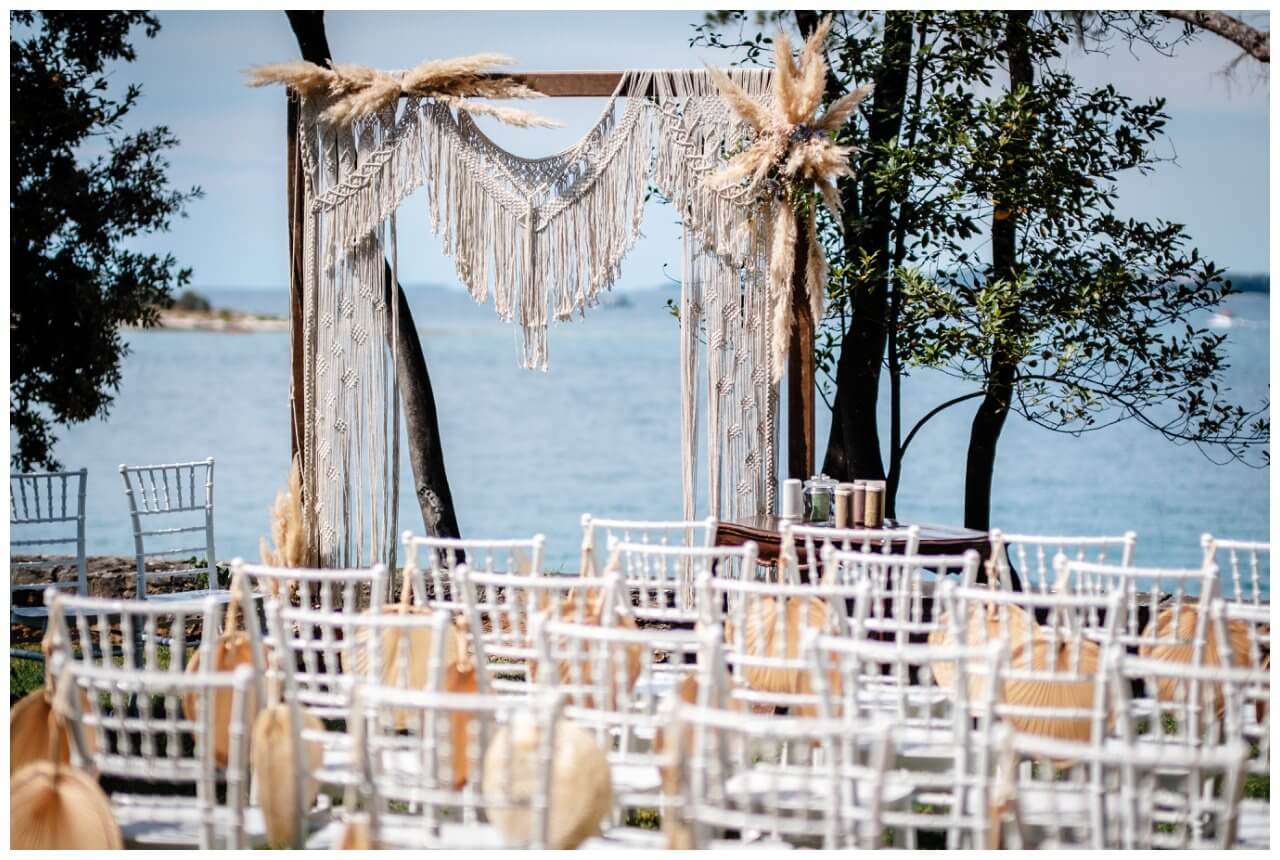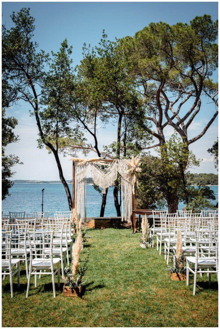 Carolina und Martin feierten ihre Boho Hochzeit in Rovinj in Kroatien auf einer kleinen Insel. Das Brautpaar entschied sich für eine freie Trauung in Kombination mit der standesamtlichen Hochzeit in Kroatien.
