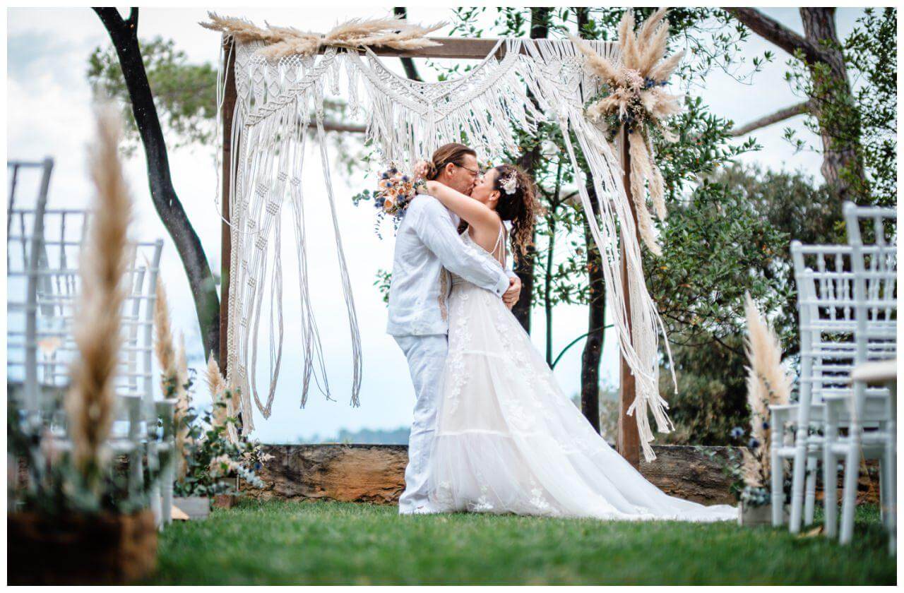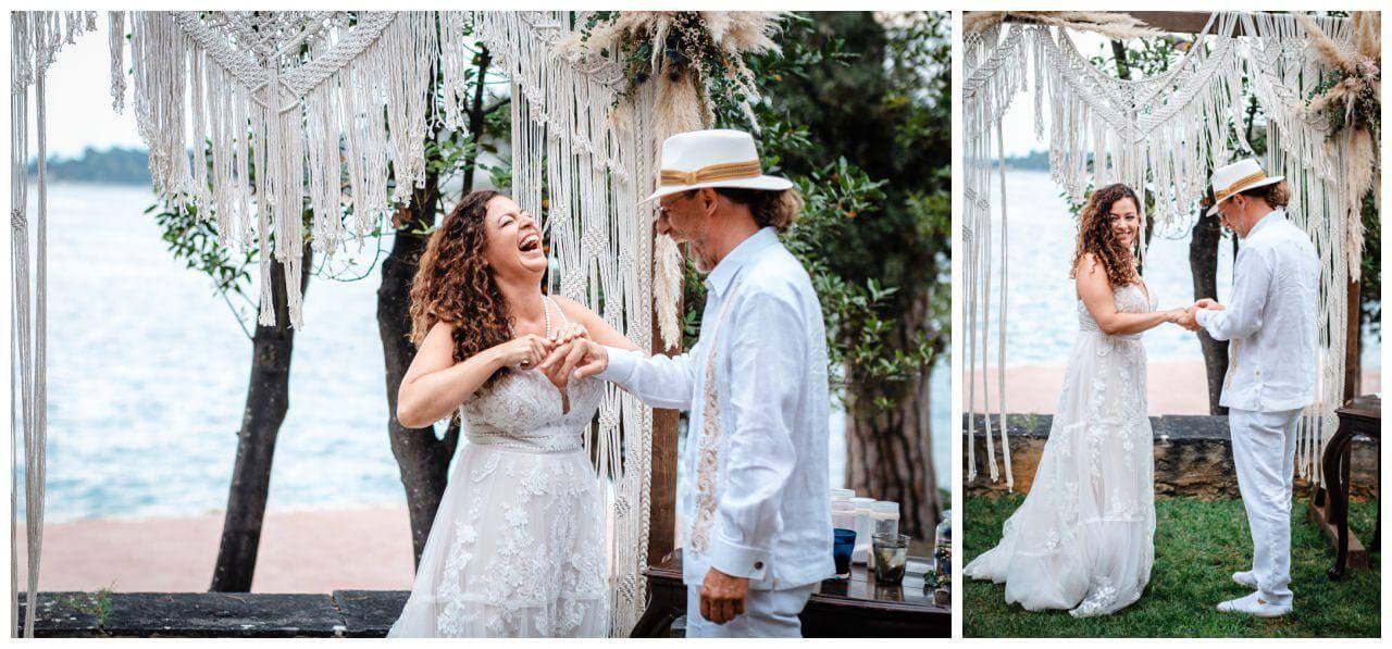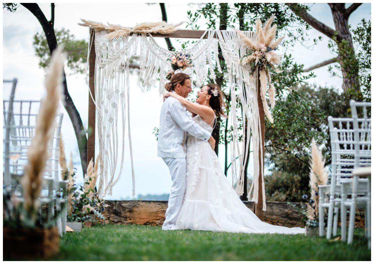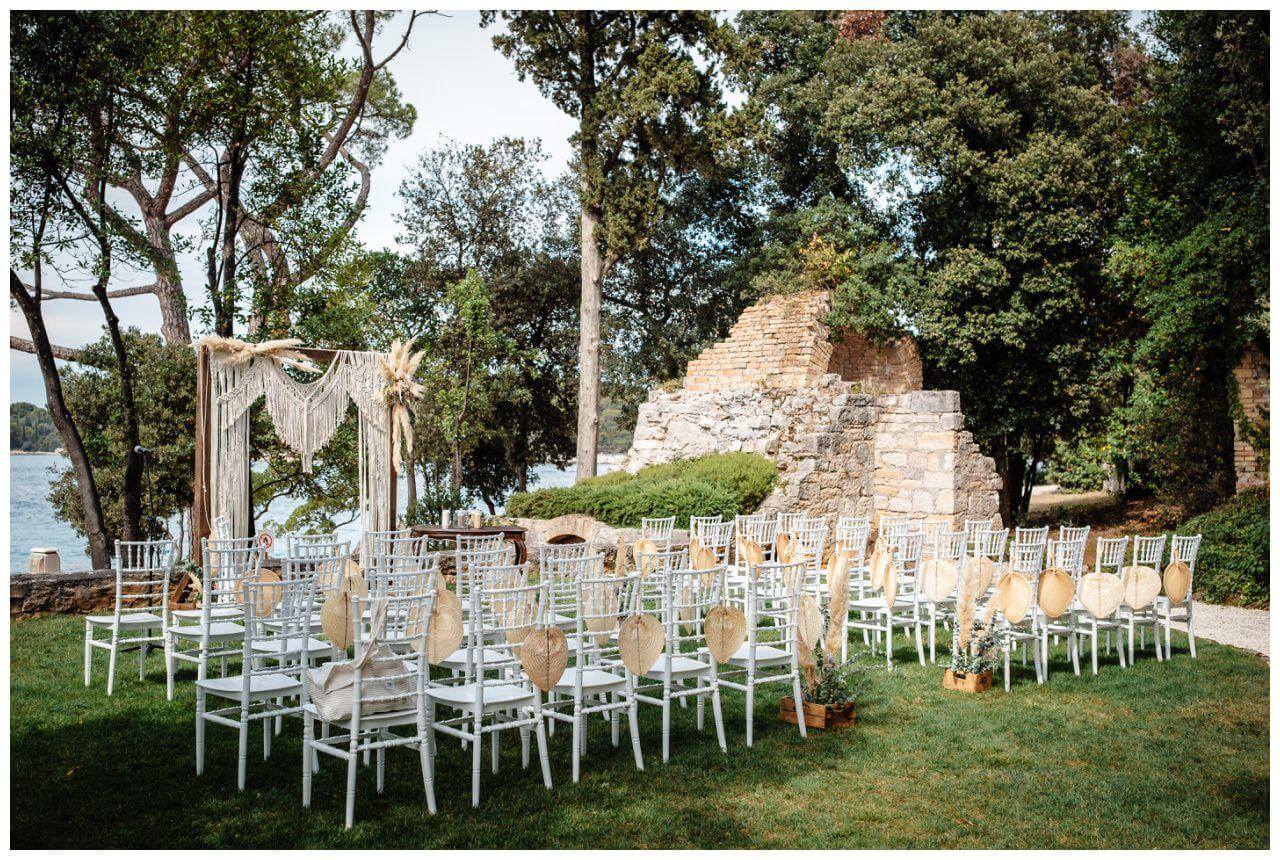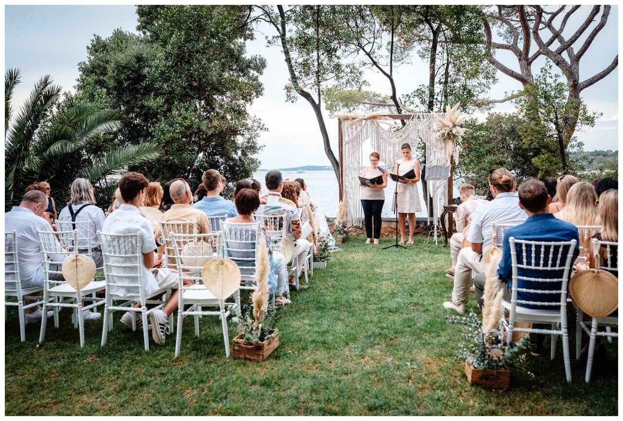 Carolina und Martin feierten ihre Boho Hochzeit in Rovinj in Kroatien auf einer kleinen Insel. Das Brautpaar entschied sich für eine freie Trauung in Kombination mit der standesamtlichen Hochzeit in Kroatien.