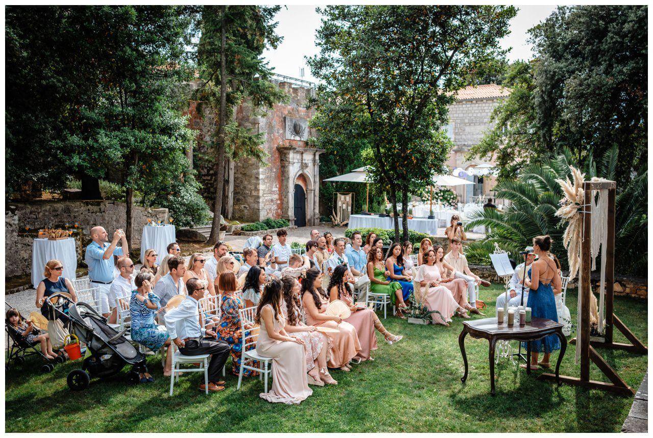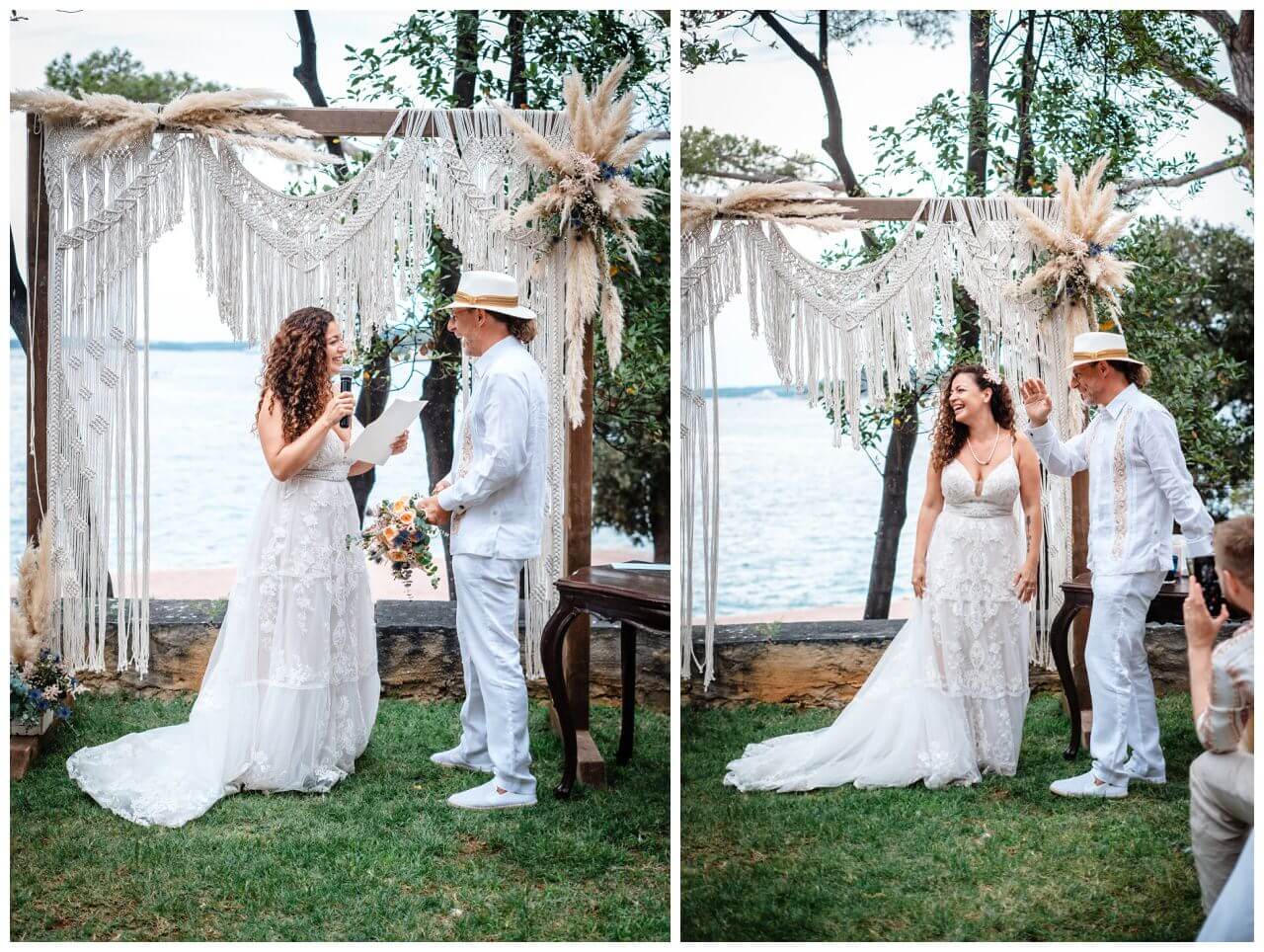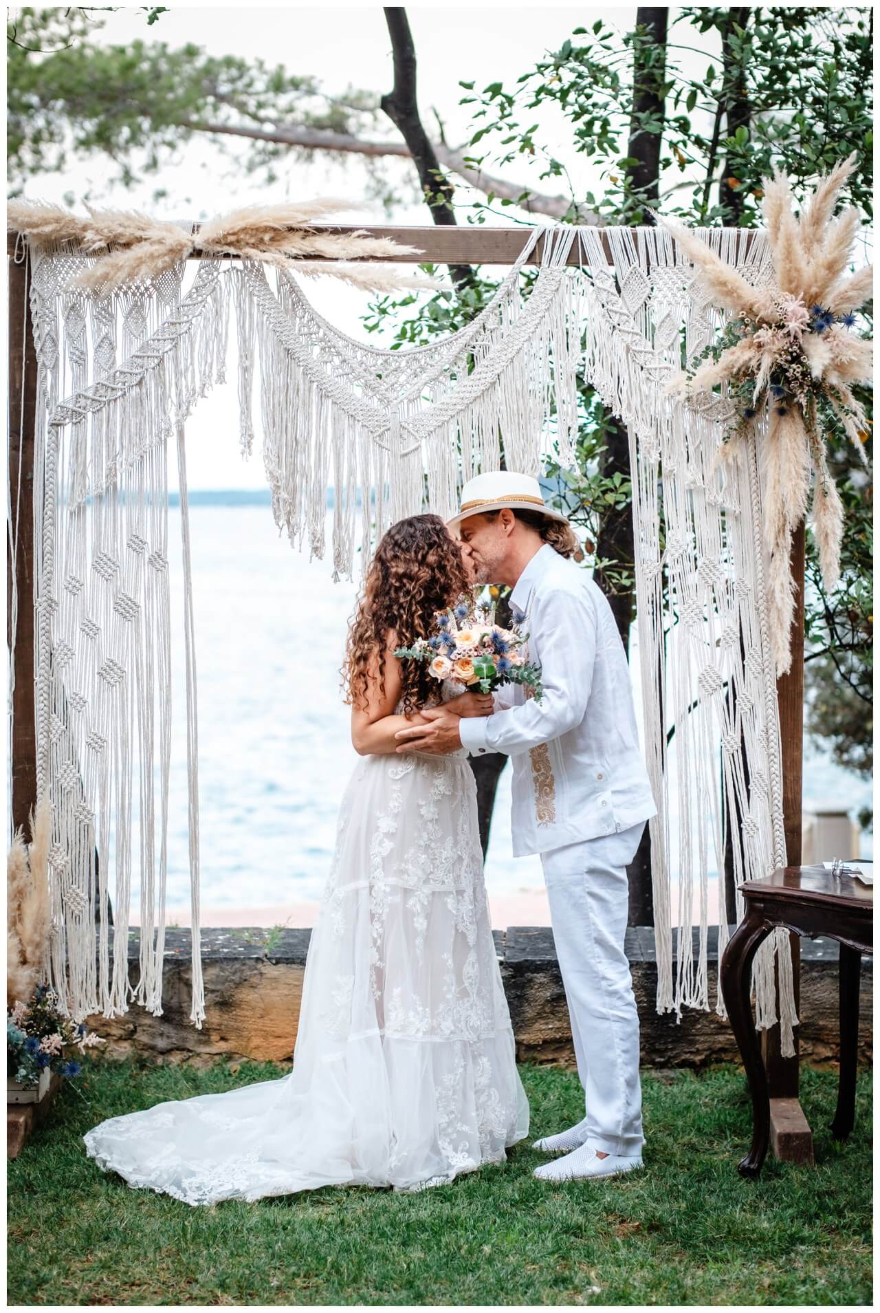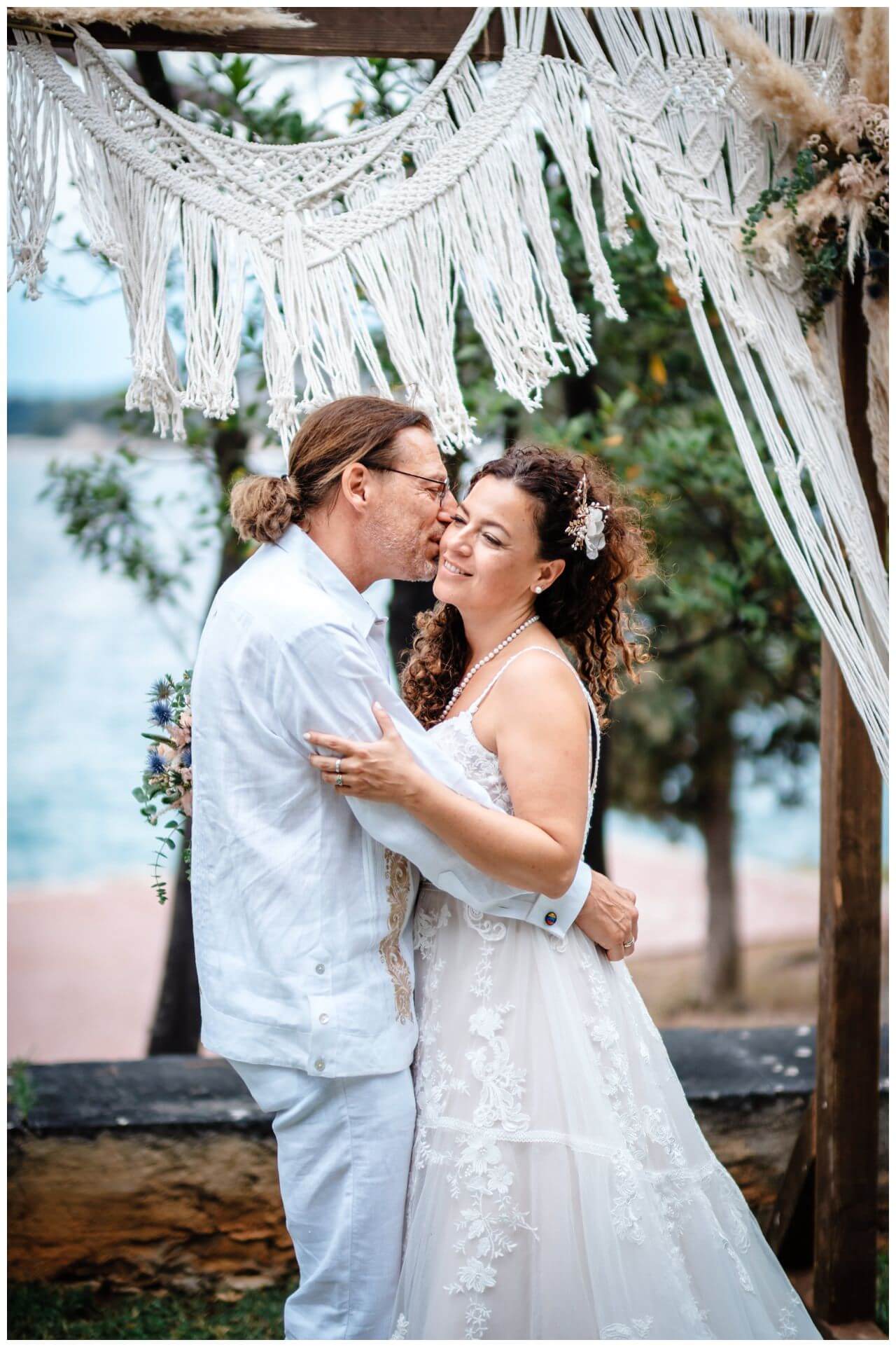 Carolina und Martin feierten ihre Boho Hochzeit in Rovinj in Kroatien auf einer kleinen Insel. Das Brautpaar entschied sich für eine freie Trauung in Kombination mit der standesamtlichen Hochzeit in Kroatien.