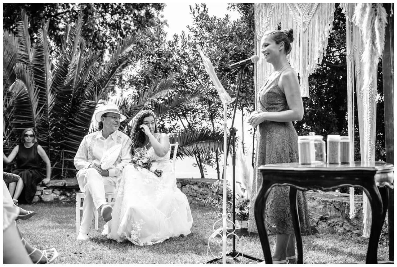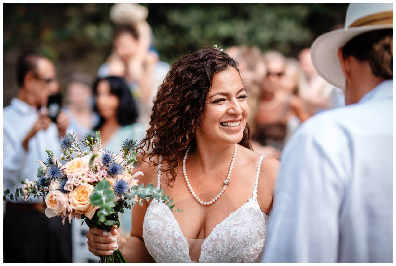 Die Trauung selbst fand direkt an der Hochzeitslocation mit Blick auf das Meer statt. Carolina und Martin hatten sich für eine freie Trauung in Kombination mit der offiziellen standesamtlichen Trauung entschieden.