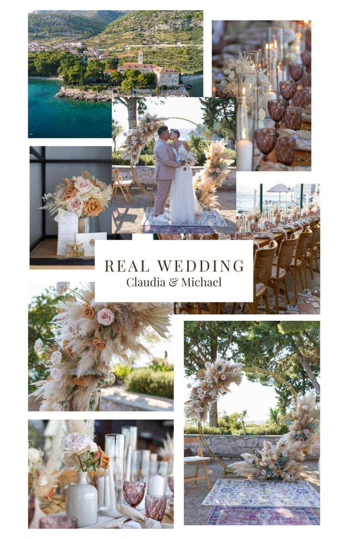 Claudia und Michael feierten ihre Freie Trauung in einem alten Kloster auf der Insel Brač. Im Anschluss ging es mit allen Gästen in den nahegelegenen Beachclub.