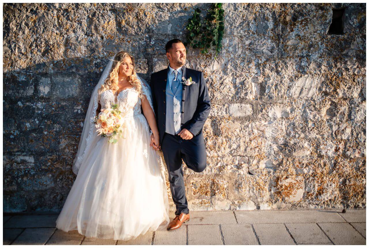 Dafür nahmen wir das Brautpaar einfach ein paar Stufen mit hinunter zum Wasser und nutzen zudem die besondere Kulisse des alten Klosters für Hochzeitsfotos in Kroatien.